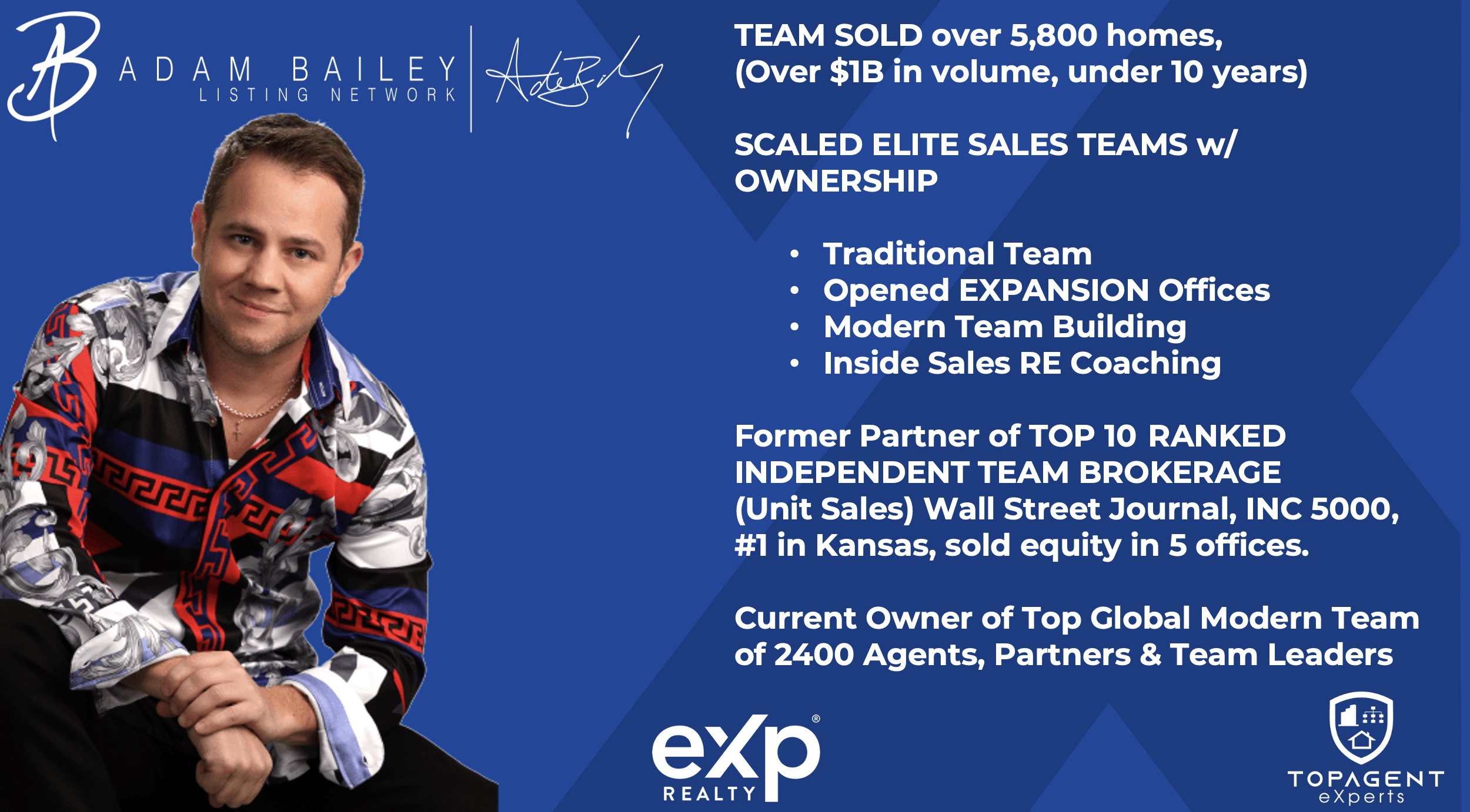 The mission of Top Agent Experts is to change lives by changing the real estate industry for everyone involved through teamwork, innovation, and experience. Our vision is to create the most successful and influential real estate network in the world by focusing on teamwork, leadership, and personal growth to achieve our goals. We believe agents, staff, clients, and our community all deserve better than the status quo. As we build that world, we’ll create a network that is known throughout our communities for service, results, and innovation.